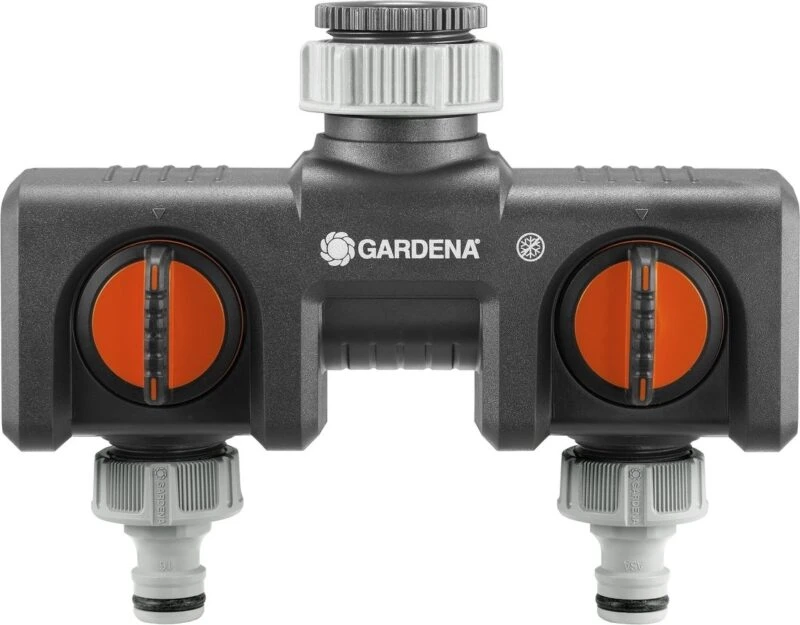 Met De Gardena 2-weg-waterverdeler kunt u gelijktijdig twee accessoires aansluiten op één kraan. De uitgangen zijn traploos regelbaar. Op de verdeler kunnen twee Gardena besproeiingscomputers of watertimers worden aangesloten.