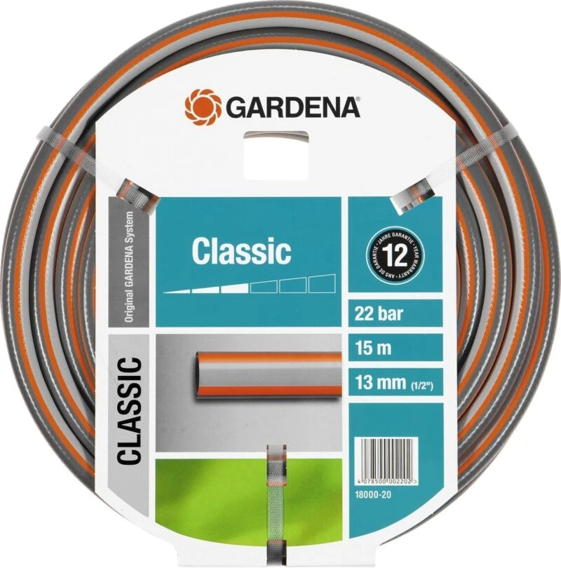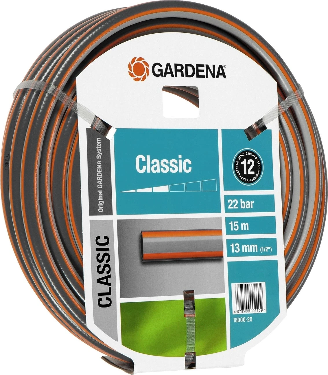 De drukbestendige Gardena Classic slang is vormvast door het gebruik van hoogwaardig weefsel en is vrij van schadelijke weekmakers (ftalaten) en zware metalen, en is natuurlijk UV-bestendig. Indien gewenst, systematisch uit te breiden met Original Gardena System koppelstukken en besproeiingsproducten. Kortom de perfecte voorwaarden voor eenvoudig en flexibel gebruik in uw tuin. De Gardena Classic slang heeft een slanglengte van 15m, een slangdiameter van 13mm en heeft een barstdruk van 22 bar. 12 jaar Gardena garantie.