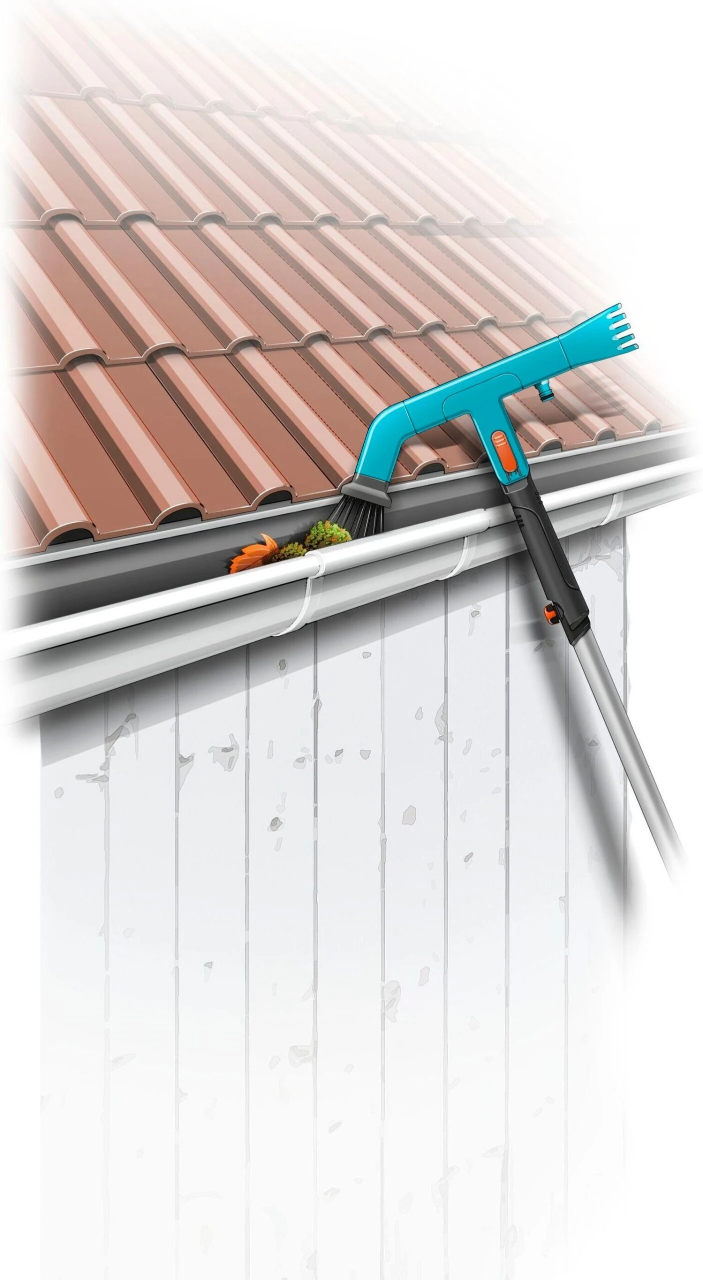 De Gardena combisystem Gootreiniger is ideaal voor het gemakkelijk leegmaken en reinigen van dakgoten. Stevige borstels aan de ene kant en twee hoogwaardige, kunststof schrapers aan de andere kant zorgen voor efficiënte reiniging. De draaggreep maakt het mogelijk om de gootreiniger zelfs zonder steel te gebruiken. Het is ook mogelijk om water te gebruiken tijdens het reinigen. Een tuinslang kan eenvoudig worden aangesloten dankzij de Original Gardena System aansluiting. De werkhoek is eenvoudig instelbaar met een quick-lock hendel. De gootreiniger past op alle Gardena combisystem stelen, waarbij Gardena een telescopische steel adviseert om tot ca. 5 meter hoog te kunnen werken. 25 jaar garantie.
