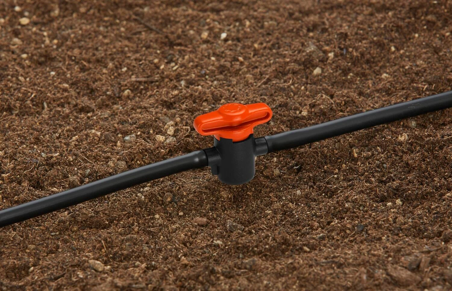 De Gardena afsluitklep 4,6 mm (3/16″) als onderdeel van het Gardena Micro-Drip-System dient voor het afsluiten van afzonderlijke leidingen.