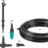 Gebruik het T-stuk 4,6 mm (3/16″) van Gardena om de 4,6 mm Aanvoerbuis en 4,6 mm Druppelbuis van het Micro-Drip-System te vertakken wanneer je je plantenbed of bloembak wil bewateren. Hij helpt je ook bij een kreukvrije installatie over de randen van bloempotten of richting de potplanten.
