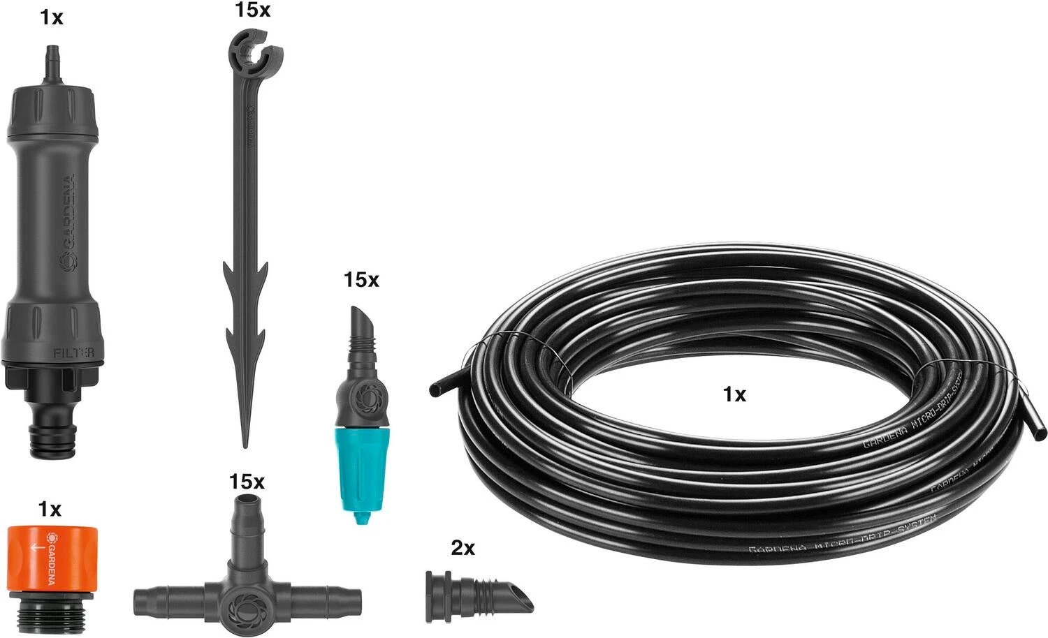 Dankzij de slimme Easy & Flexible-koppelingstechnologie kan je de Aanvoerbuizen in slechts een paar stappen handig installeren. Wanneer je het apart verkrijgbaar Hoofdapparaat 1000 (art. nr. 13333-20) of Hoofdapparaat 2000 (art. nr. 13310-20) gebruikt, is je Micro-Drip-System betrouwbaar waterdicht, met een gelijkmatige waterdruk.