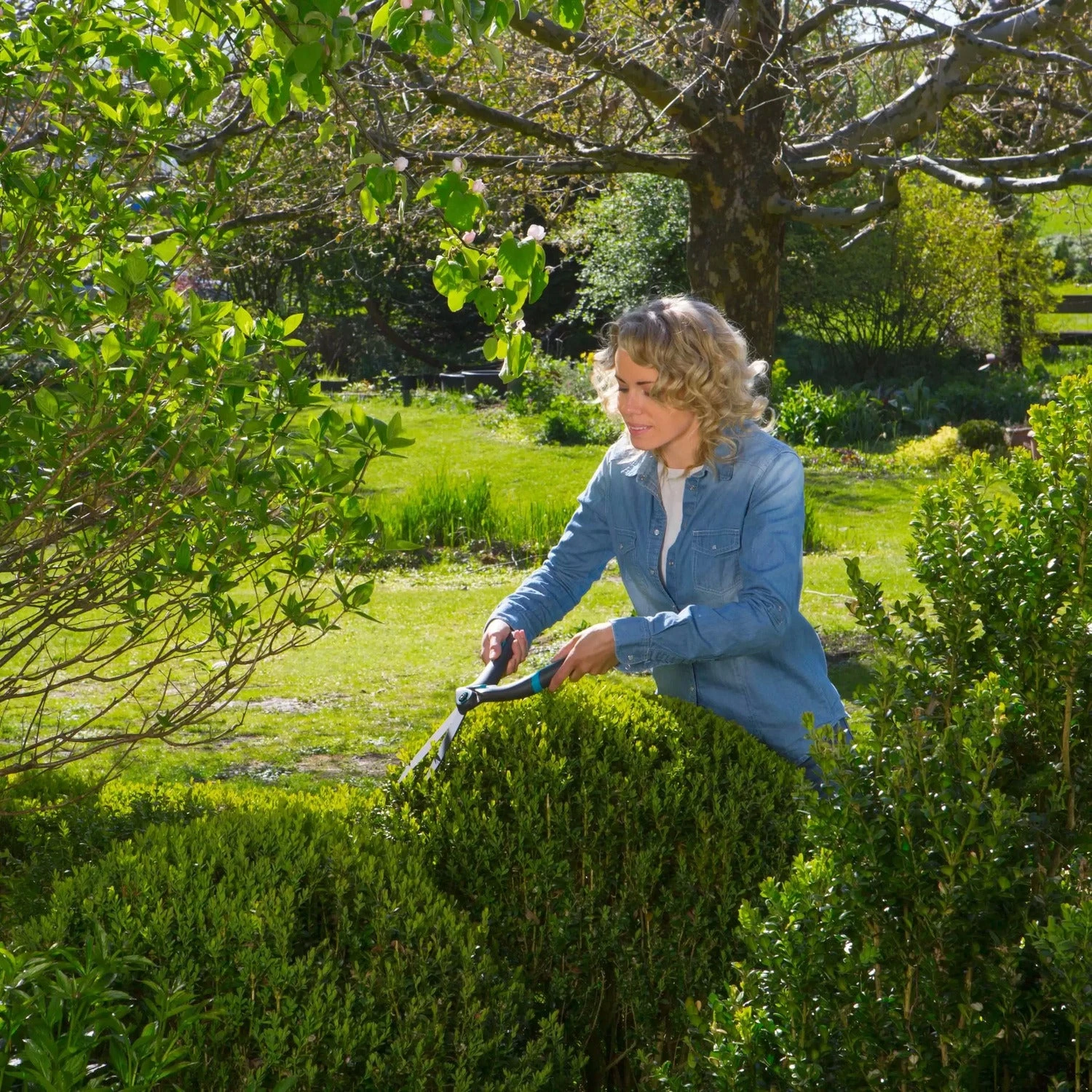 Als je een specifieke vorm in gedachten heeft voor uw haag, struik of buxus, is de PrecisionCut buxusschaar van Gardena een uitstekende keuze. Je kan volledig vertrouwen op deze heggenschaar – dat garandeert de 25-jarige fabrieksgarantie. De praktische heggenschaar heeft rechte en zeer scherpe messen zodat elke snede telt. Bovendien zijn de robuuste stalen messen voorzien van antikleefcoating, zodat er geen resten blijven kleven en wrijving wordt verminderd, wat resulteert in betere snoeiprestaties. Hierdoor kan je je volledig concentreren op je werk. Door de populaire Z-vorm van de schaar, kan je buxussen gemakkelijk in een sferische of spiraalvormige vorm snoeien. Maar dat is niet alles, want het werk wordt veel gemakkelijker gemaakt door andere praktische factoren. De heggenschaar ligt perfect in je handen dankzij de ErgoTec-handgrepen. Bovendien is het gereedschap extreem licht. De handgrepen zijn gemaakt van vezelversterkte kunststof en bieden altijd een stevige en veilige grip. Het lage gewicht is vooral bij langdurig werk zeer plezierig. In combinatie met de uitstekende demping heb je geen last van vermoeidheid, omdat de polsen en armen nooit worden overbelast.