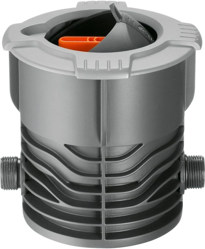 Het Gardena reguleer- en afsluitventiel – als onderdeel van het Gardena Sprinklersystem – kan worden gebruikt voor het handmatig regelen en afsluiten van afzonderlijke verzonken sproeiers of volledige sproeiergroepen. De watertoevoer kan traploos worden ingesteld of helemaal worden uitgeschakeld. De opklapbare, bolvormige afdekking verdwijnt bij opening in het contact en vormt dus geen probleem bij grasmaaien. Door de brede rand kan er geen gras in de afdekking groeien. Een uitneembaar filter voorkomt vervuiling van het contact als de afdekking open is. Het Gardena reguleer- en afsluitventiel heeft een buitendraad van 3/4 inch.
