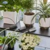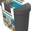 Of u nu op vakantie bent, op zakenreis of gewoon een druk gezinsleven heeft, met de vakantiebewateringsset van Gardena hoeft u zich niet langer druk te maken over het bewateren van uw kamerplanten. Ondanks uw afwezigheid worden uw planten voortdurend optimaal bewaterd. Voor dit bewateringssysteem is aansluiting op het stroomnet nodig, maar het hoeft niet op de kraan te worden aangesloten. U kunt de vakantiebewateringsset overal in huis plaatsen, mits in de buurt van een stopcontact. Dankzij de druppelverdelers met drie verschillende waterafgiftesnelheden worden – afhankelijk van de waterbehoefte – tot 36 verschillende kamerplanten gedurende één minuut per dag gelijktijdig bewaterd, waarbij rekening wordt gehouden met de verschillende waterbehoeften. De vakantiebewateringsset bevat alle noodzakelijke onderdelen en kan direct worden gebruikt. Het systeem is gemakkelijk te installeren en eenvoudig op te starten. Het bijbehorende waterreservoir bestaat voor 80% uit gerecycled materiaal en is daardoor de duurzame bewateringsoplossing voor uw huis of serre. Het is zelfs mogelijk om de irrigatiepomp aan te sluiten voor optimaal watergebruik. Het waterreservoir kan ook als praktische opbergruimte voor de andere onderdelen van de set worden gebruikt. Dankzij het slanke design kan de irrigatieset onopvallend worden geplaatst en achter het meubilair worden verborgen. Door het slimme, moderne ontwerp van het systeem is de bewateringsset tijdloos en laat zich perfect in iedere woonruimte inpassen. Uiteraard is de set ook op het balkon te gebruiken. Het waterreservoir kan tot 10,5 liter water bevatten en zorgt voor een betrouwbare watertoevoer. Als u langer op reis bent, is dat ook geen probleem: het watervolume kan worden vergroot door extra waterreservoirs aan te sluiten. Plantverzorging wanneer u er niet bent. Onafhankelijke irrigatie voor kamerplanten.