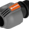 Het Gardena Verbindingsstuk 25 mm x 1 inch buitendraad – als onderdeel van het Gardena Sprinklersystem – sluit de Gardena Beregeningsventielen aan op de leiding. Met het verbindingsstuk kan het besproeiingssysteem ook direct op het waterleidingnet worden aangesloten. Door de gepatenteerde ‘Quick & Easy’-aansluittechnologie kunnen leidingen zonder gereedschap worden gemonteerd en gedemonteerd door de schroefaansluiting 140° te draaien. Voor een waterdichte, veilige werking is de schroefdraadaansluiting van het verbindingsstuk zelfafdichtend.