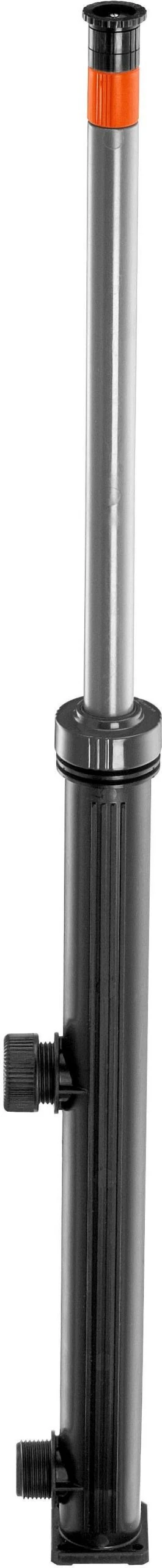 Als onderdeel van het Gardena Sprinklersystem is de Gardena Verzonken sproeier S 80/300 zeer geschikt voor het besproeien van kleinere gazons tot 80 m² en kan de sproeier worden gecombineerd met de verzonken sproeier S 80 binnen één leiding. Zeer slim: door de lange aslengte van 300 mm kan de verzonken sproeier gemakkelijk over hoge planten sproeien – het water komt waar het nodig is. Het bereik is variabel tussen 2,50 en 5 m voor het afzonderlijke oppervlak instelbaar. De sector die moet worden besproeid kan op de sproeierkop worden aangepast van 5 tot 360°. Er kan een oppervlak van een zeer kleine sector tot een volledige cirkel worden besproeid. De watertoevoer kan volledig worden uitgeschakeld. Het geïntegreerde vuilfilter zorgt voor een ononderbroken werking. Dankzij het geïntegreerde ontwateringsventiel is het systeem vorstbestendig. Voor aansluiting is er een buitendraad van 3/4 inch aanwezig.